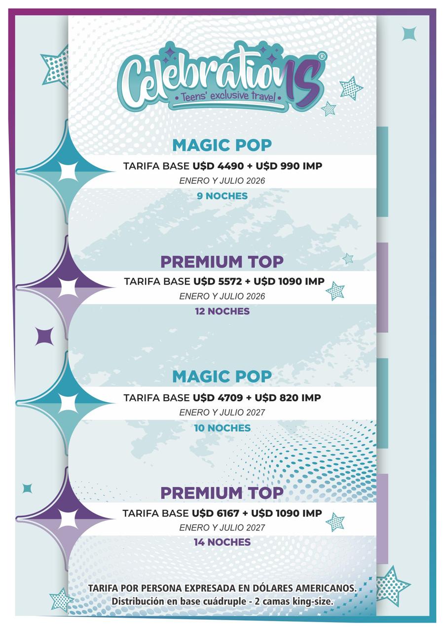 Tarifa desde USD 4490. + Imp. Según plan de tarifario Tarifa por persona expresada en dólares americanos.